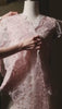 A vision of refined grace, the Delavina Lace Modern Kebaya inspired set, pairs a blush pink lace peplum top with scalloped edges and intricate floral embroidery, adorned with statement crystal clasps, over an ivory column skirt delicately woven with shimmering threadwork. This timeless piece merges heritage elegance with modern sophistication, perfect for weddings, formal gatherings, or cherished celebrations.