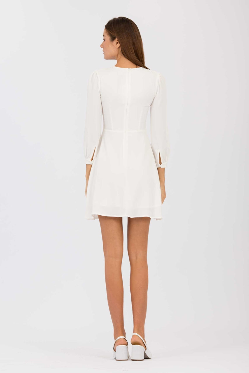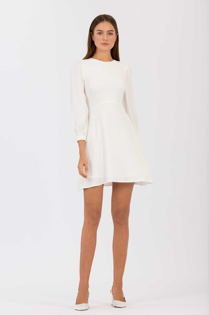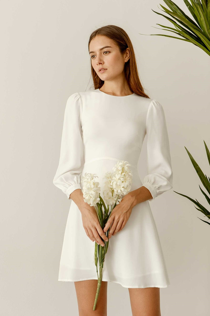 Details: Scoop neckline, hidden back zip, puff sleeves and lined.