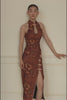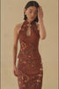 Details: Oriental deep keyhole qipao neckline, back zip, padded bust and lined.