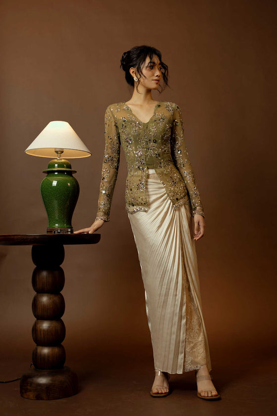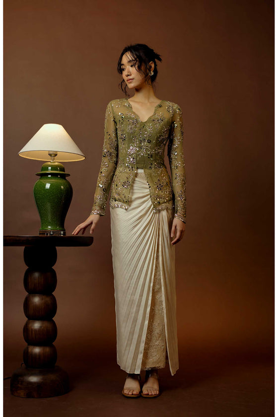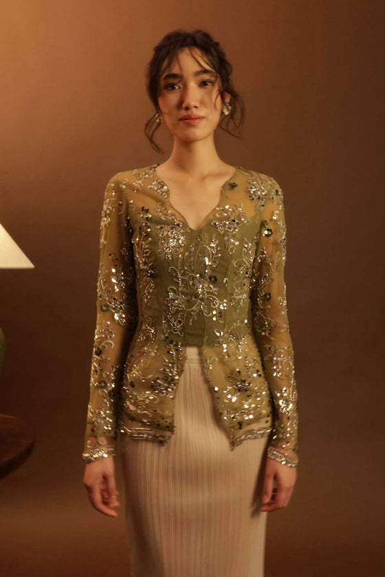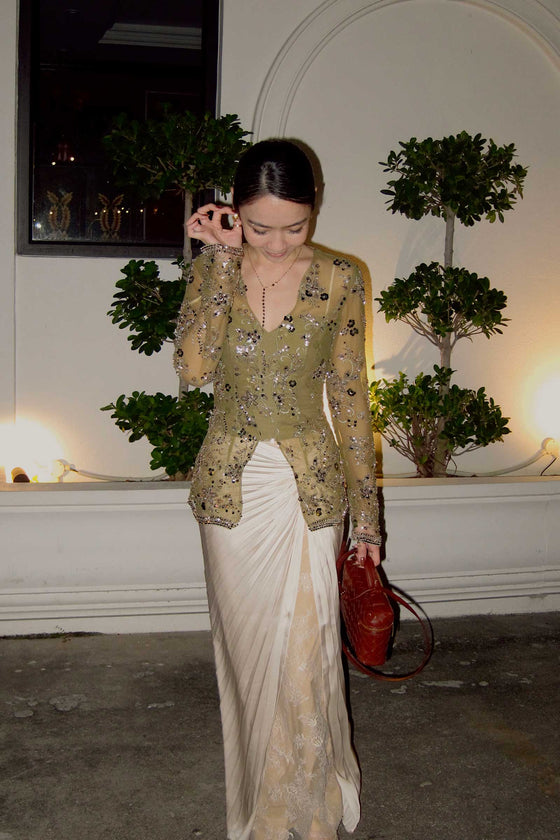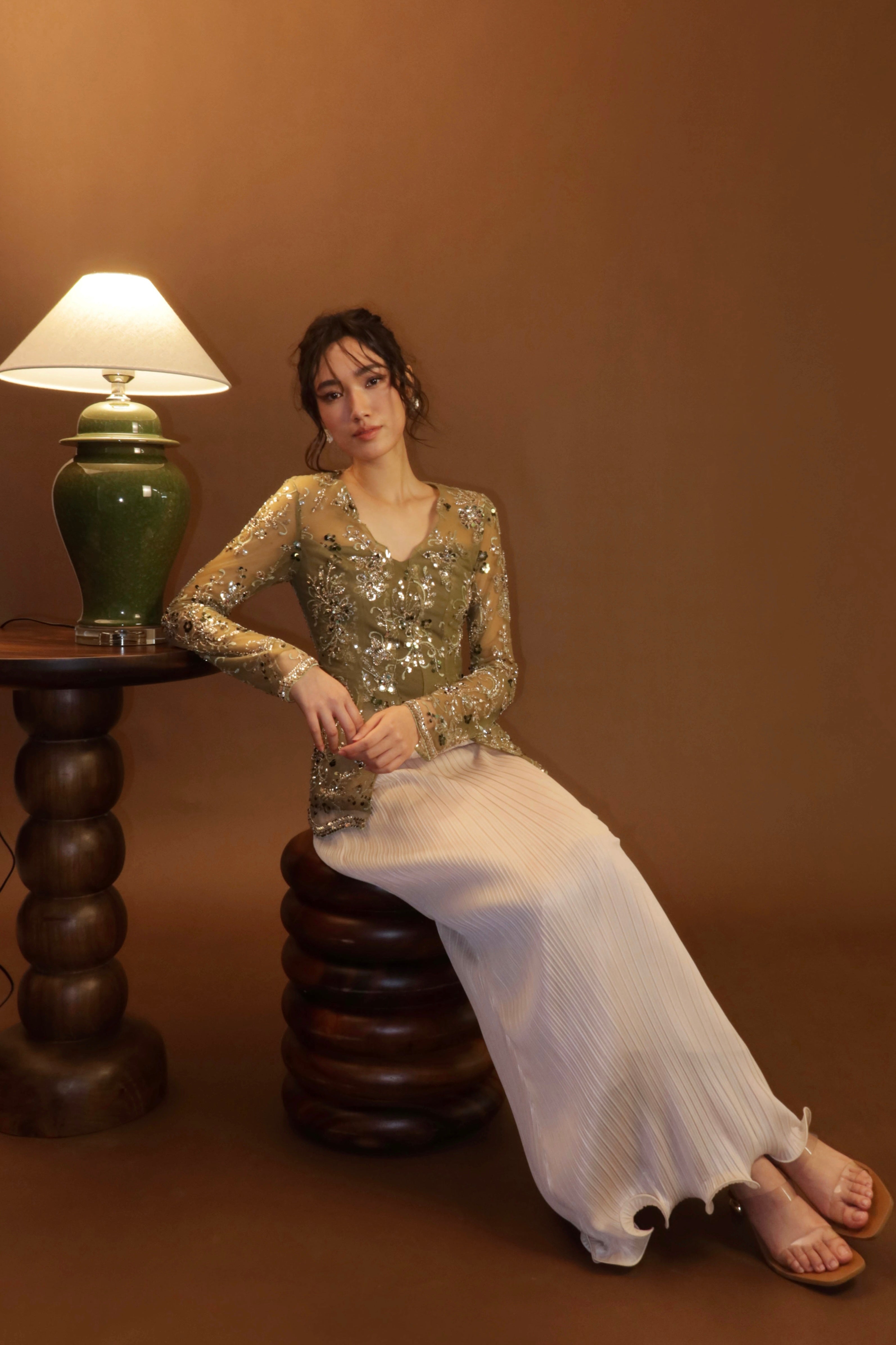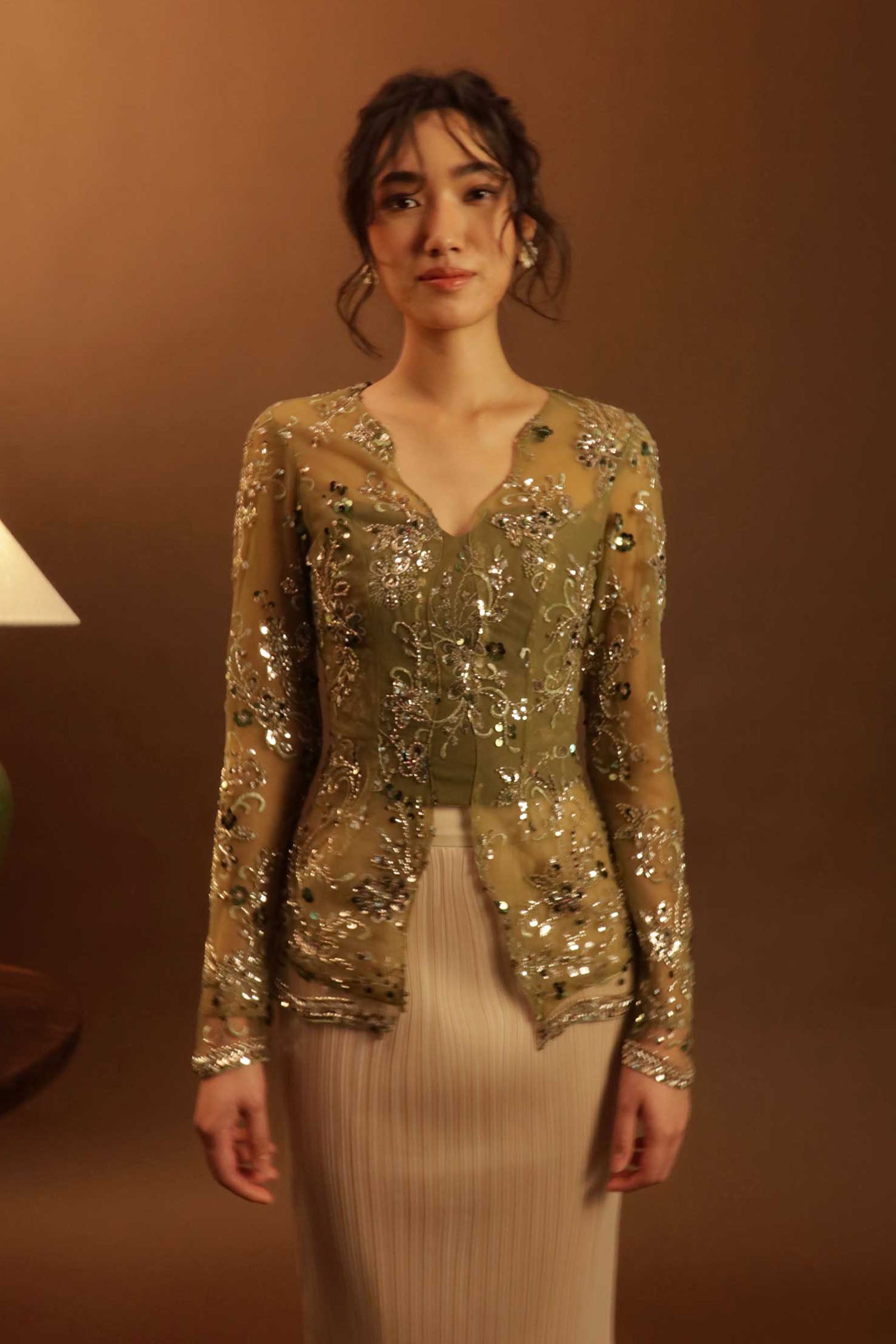 Details: Kebaya V neckline, back zip, attach inner top and double layer mesh.