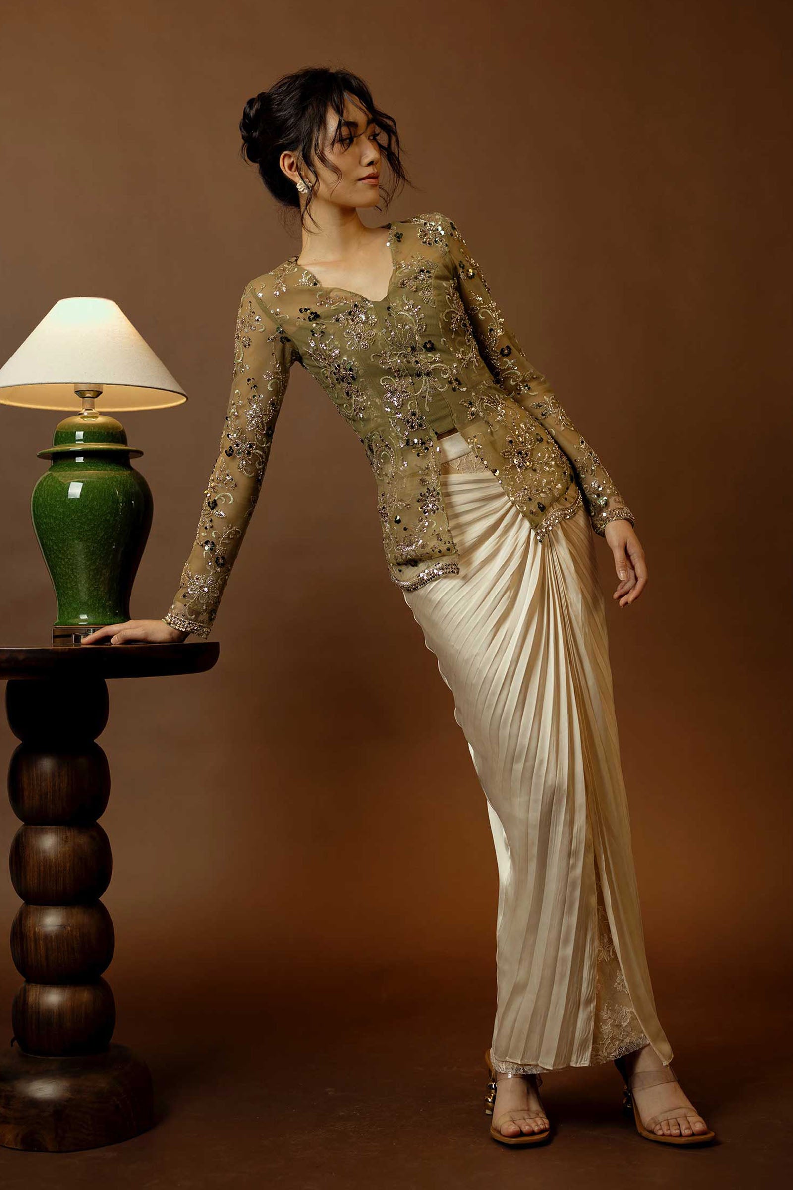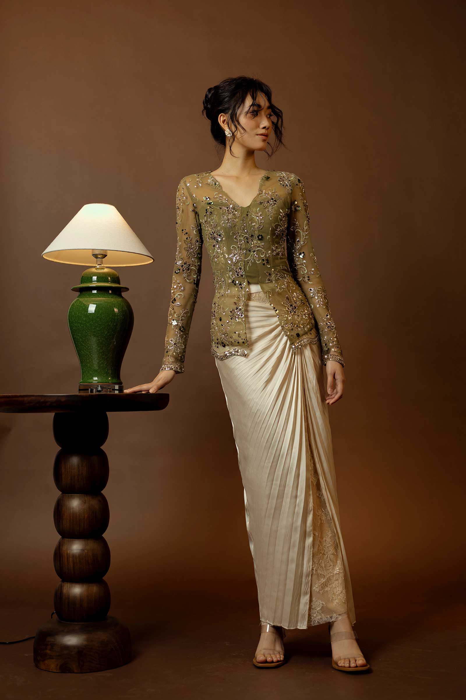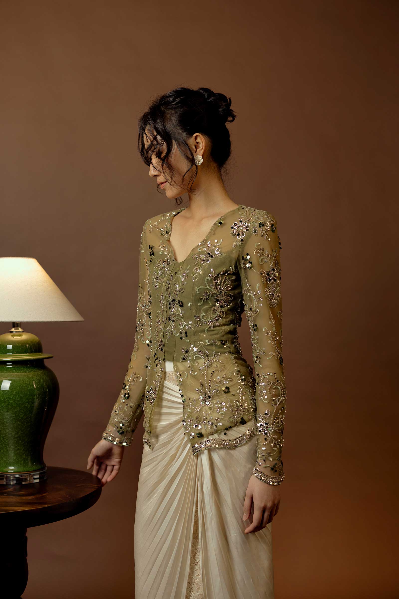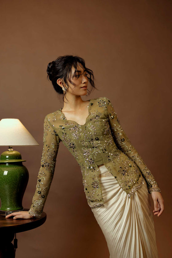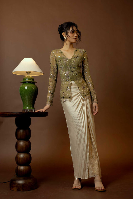 Details: Kebaya V neckline, back zip, attach inner top and double layer mesh.